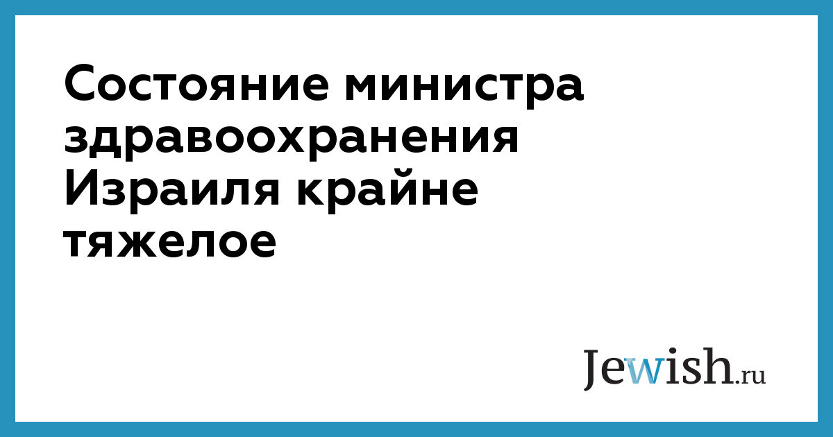 Состояние министра здравоохранения Израиля крайне тяжелое