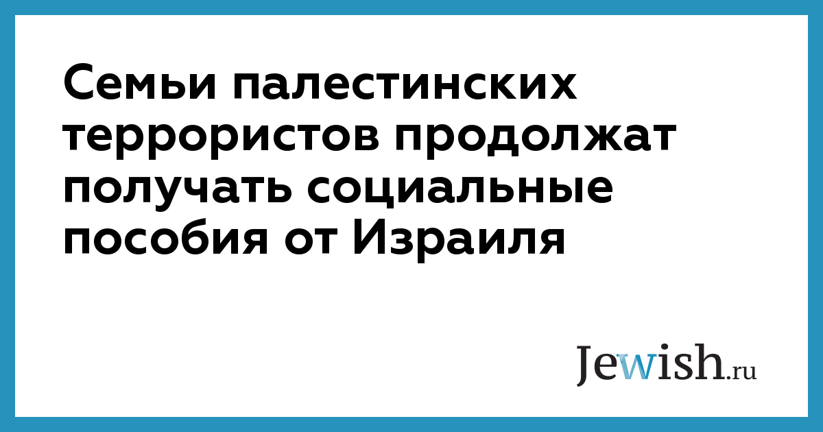 Семьи палестинских террористов продолжат получать социальные пособия от Израиля