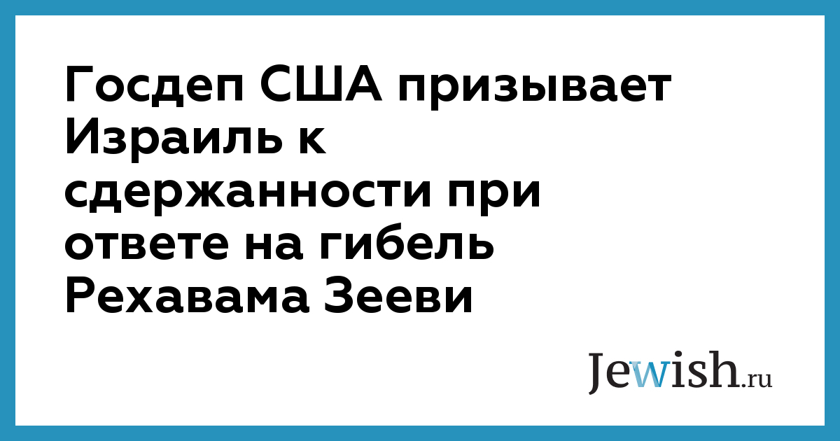 Госдеп США призывает Израиль к сдержанности при ответе на гибель Рехавама Зееви