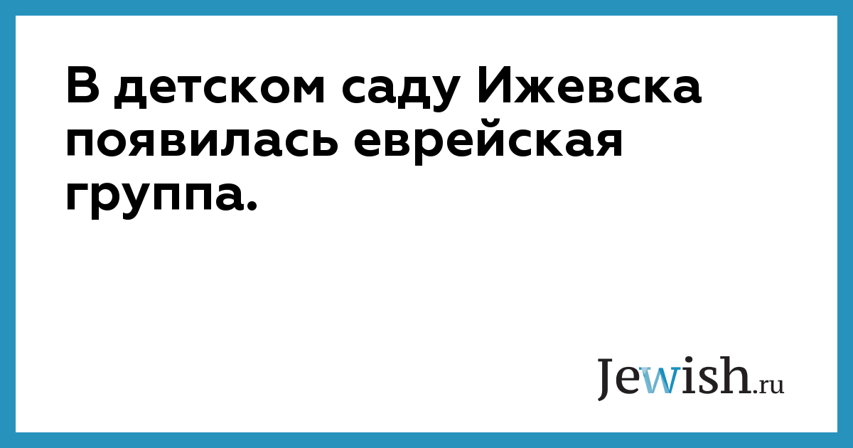 В детском саду Ижевска появилась еврейская группа.