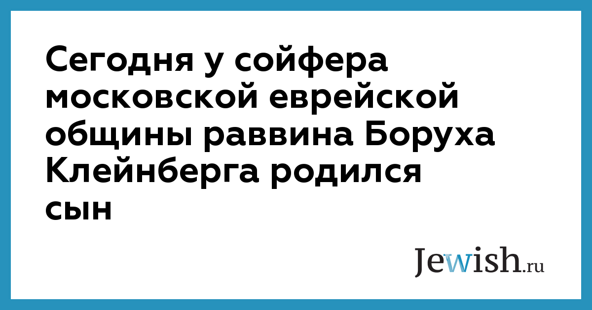 Сегодня у сойфера московской еврейской общины раввина Боруха Клейнберга родился сын