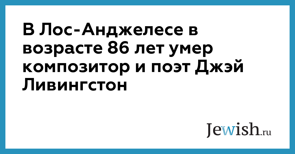 В Лос-Анджелесе в возрасте 86 лет умер композитор и поэт Джэй Ливингстон