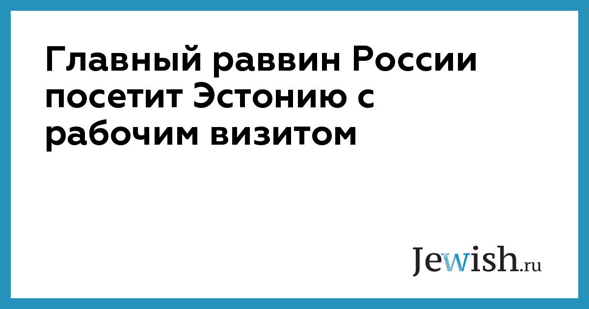 Главный раввин России посетит Эстонию с рабочим визитом