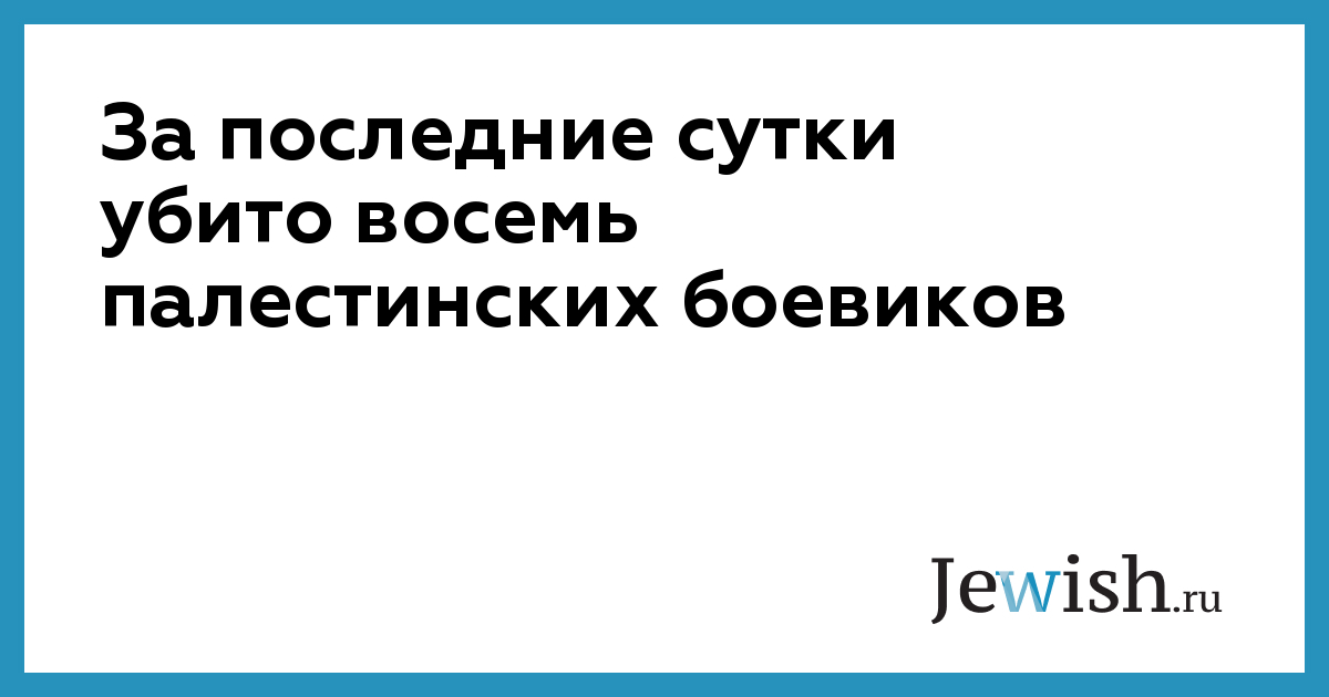 Таким образом, число убитых за последние сутки достигло восьми человек. Последний боевик был членом сил безопасности Палестинской национальной администрации (ПНА). Еще девять палестинских бойцов получили ранения при зачистке села Бейт-Рима (район Рамаллы).