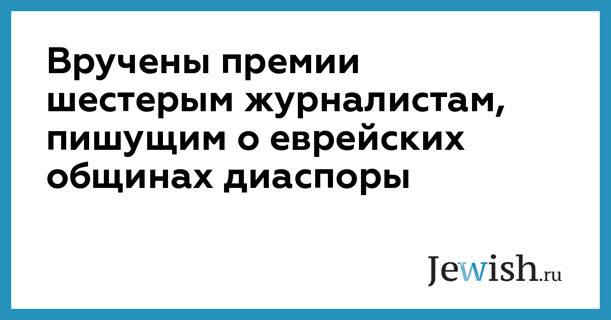 Вручены премии шестерым журналистам, пишущим о еврейских общинах диаспоры