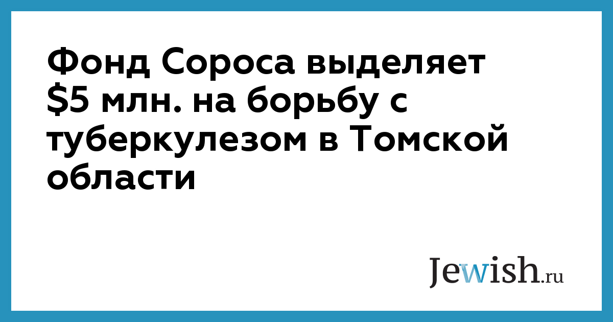 Это первый проект,который будет реализован в Евразии. На борьбу с туберкулезом в Томской области Фондом Сороса будет выделено около $5 млн.