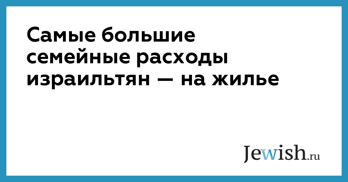 Самую большую долю в ежемесячном семейном бюджете составляют расходы по статье «жилье»: 2.145 шекелей в месяц, то есть 22%. На втором месте — расходы на питание: 1.662 шекеля, 17%. Выросли в прошлом году расходы на образование — на 6,6%, составив 1.380 шекелей в месяц. Выросли и расходы на здравоохранение, на 10,1%, составив 445 шекелей в месяц. Почти без изменений остались расходы на транспортные услуги: они увеличились на 1,6%, достигнув суммы в 1.880 шекелей в месяц.