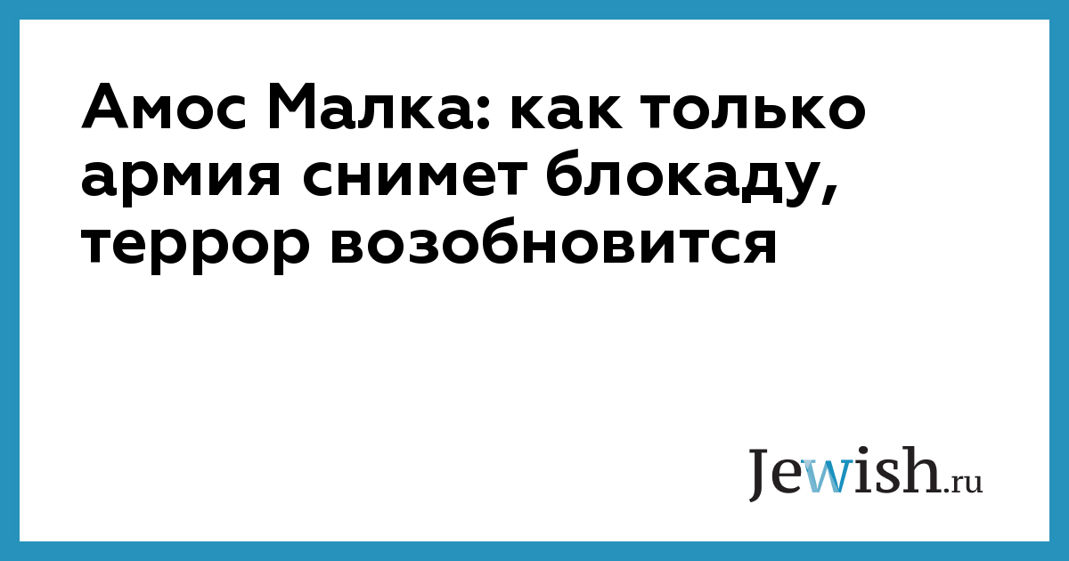 Амос Малка: как только армия снимет блокаду, террор возобновится