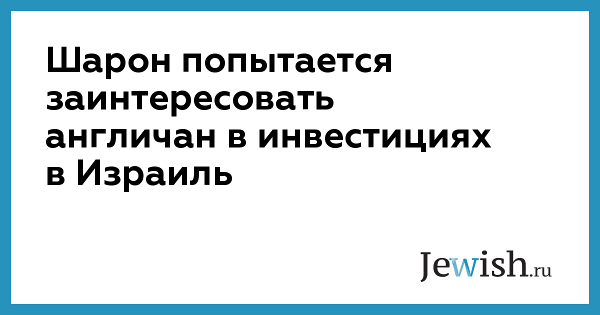 Глава правительства попытается заинтересовать англичан инвестициями в Израиле. Речь не пойдет о хай-теке. Шарон намерен рассказать о грандиозных планах по развитию инфраструктуры в стране, для которых потребуются зарубежные инвестиции. В организации встречи Шарона с английскими инвесторами самое активное участие принимает президент Федерации торговых палат Дани Гиллерман, возглавляющий британо-израильский экономический совет.