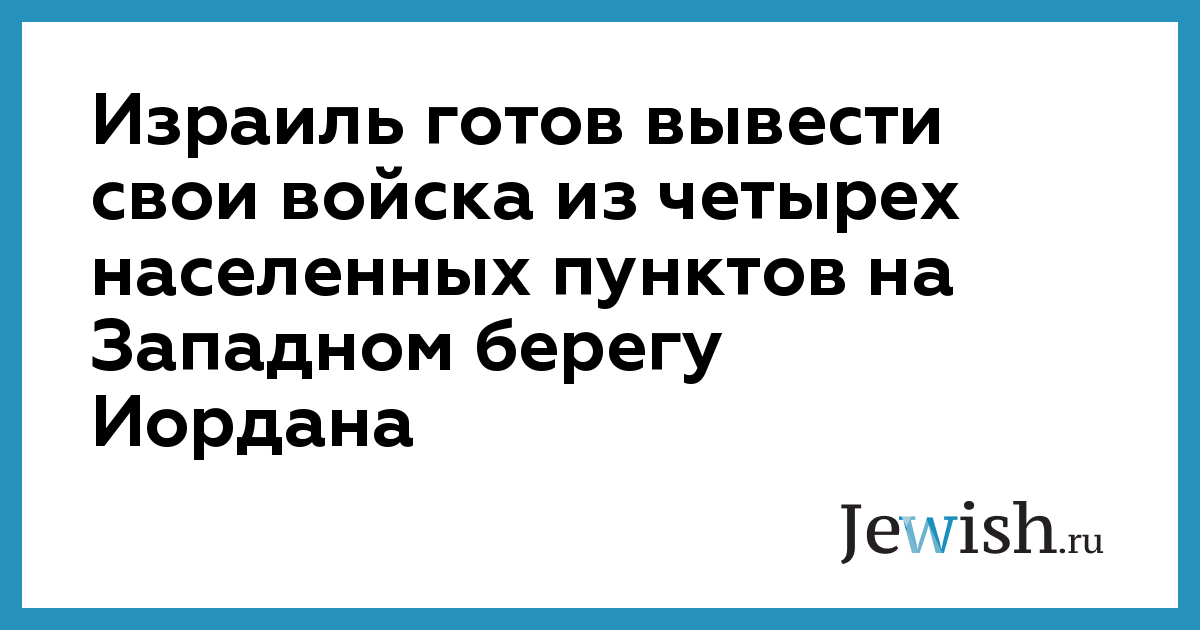 Израиль готов вывести свои войска из четырех населенных пунктов на Западном берегу Иордана