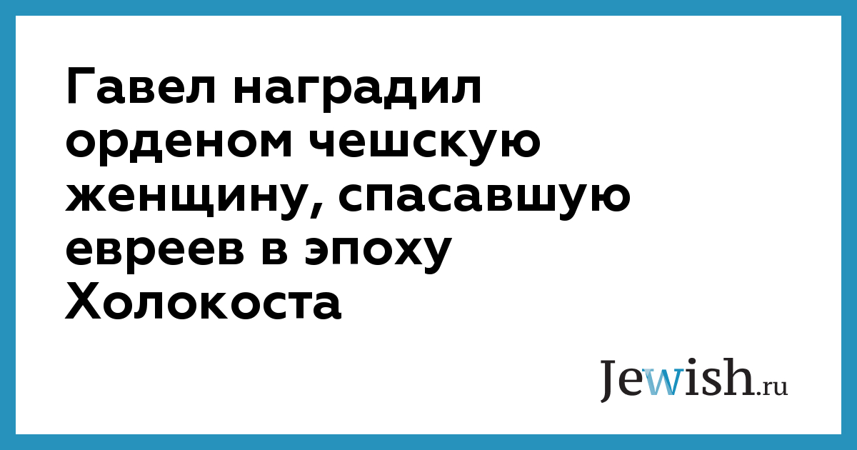 Гавел наградил орденом чешскую женщину, спасавшую евреев в эпоху Холокоста