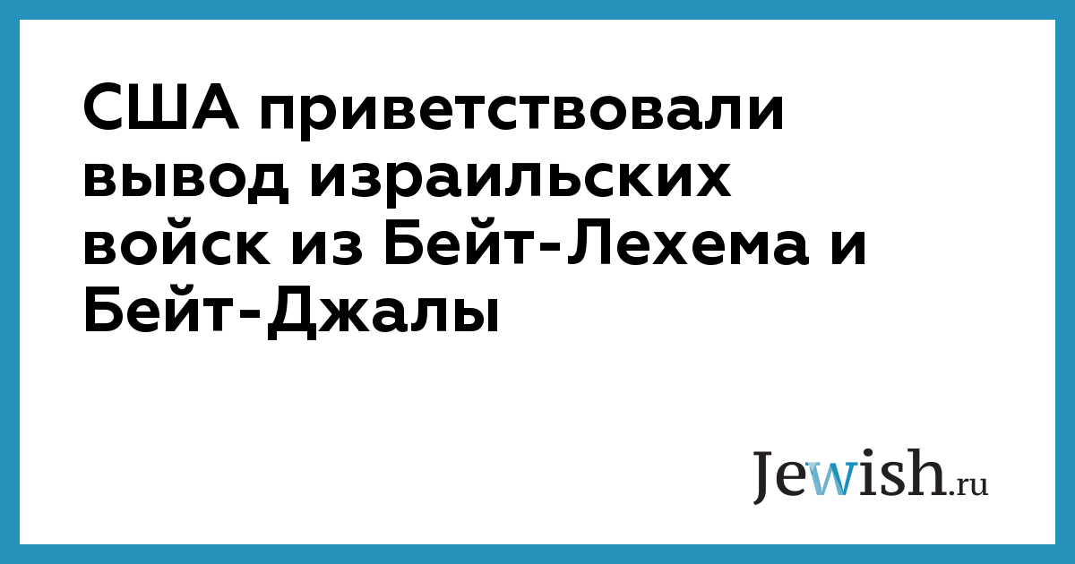 США приветствовали вывод израильских войск из Бейт-Лехема и Бейт-Джалы