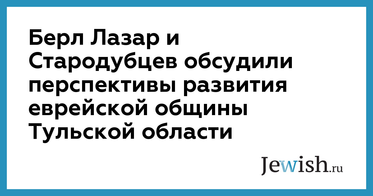 Во время беседы Василий Стародубцев отметил, что "руководство области и города взяло курс на ровное отношение со всеми диаспорами и общинами". Он также поблагодарил Лазара за предпринимаемые им "усилия по возрождению духовных ценностей в России". В ходе встречи губернатор и главный раввин России также обсудили вопросы инвестиционного климата в Тульской области, социально-экономическую ситуацию и сотрудничество с деловыми кругами стран Запада и Израилем.