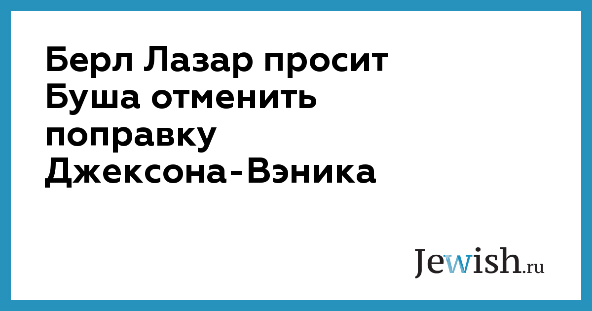 Берл Лазар просит Буша отменить поправку Джексона-Вэника