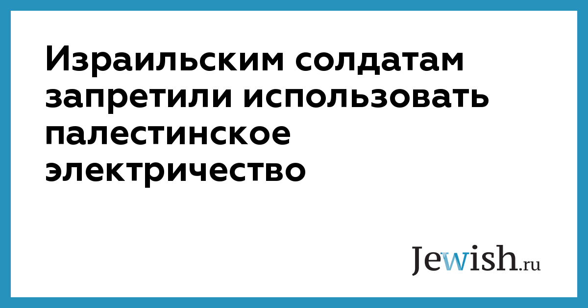 Израильским солдатам запретили использовать палестинское электричество