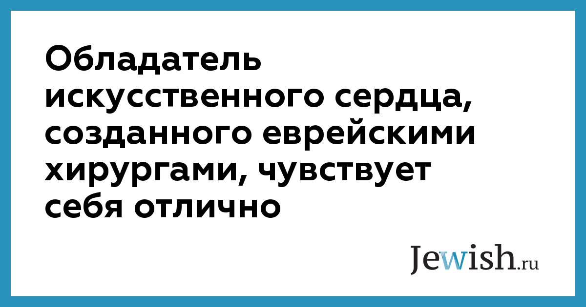 Обладатель искусственного сердца, созданного еврейскими хирургами, чувствует себя отлично