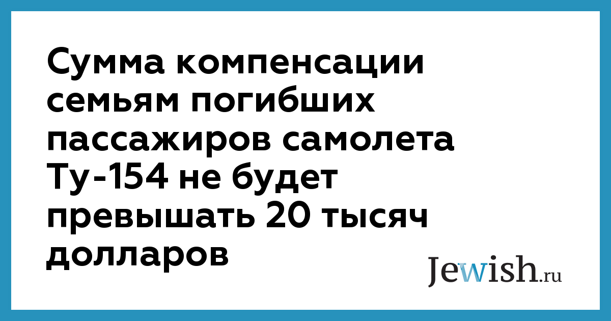 Семьи погибших пассажиров самолета Ту-154 компании "Сибирь", проживающие как в России, так и в Израиле, в ноябре получат предварительную компенсацию в размере 2 тыс. долл., не дожидаясь официального заключения госкомиссии о причинах авиакатастрофы. Об этом РБК сообщила сегодня старший партнер юридической фирмы "Тиссен и партнеры" Ольга Тиссен. Авиакомпания уполномочила эту фирму урегулировать вопросы, связанные со страховыми выплатами российским родственникам погибших. По словам О.Тиссен, сроки выплаты и размер окончательных компенсаций будут определены позднее в каждом отдельном случае — "в результате индивидуальных переговоров страховщиков с родными погибших". Однако сумма окончательной компенсации не должна будет превышать 20 тыс. долл., отметила представитель фирмы "Тиссен и партнеры". На сегодняшний день сотрудники этой фирмы смогли встретиться с семьями только 14 из 22 погибших пассажиров — граждан РФ. "О некоторых семьях у нас нет никаких данных, и они сами не обращаются ни к нам, ни в авиакомпанию", — сказала О.Тиссен. Напомним, что самолет Ту-154, совершавший рейс по маршруту Тель-Авив — Новосибирск, потерпел катастрофу над Черным морем 4 октября. Лайнер был непреднамеренно сбит зенитной ракетой ПВО Украины. Все 78 человек, находившиеся на борту, включая членов экипажа, погибли. Самолет и пассажиры были застрахованы в страховой компании "АФЕС".