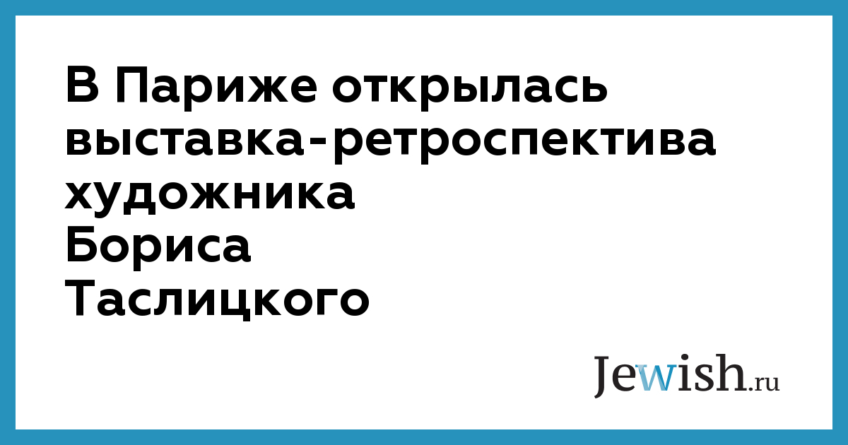 В Париже открылась выставка-ретроспектива художника Бориса Таслицкого