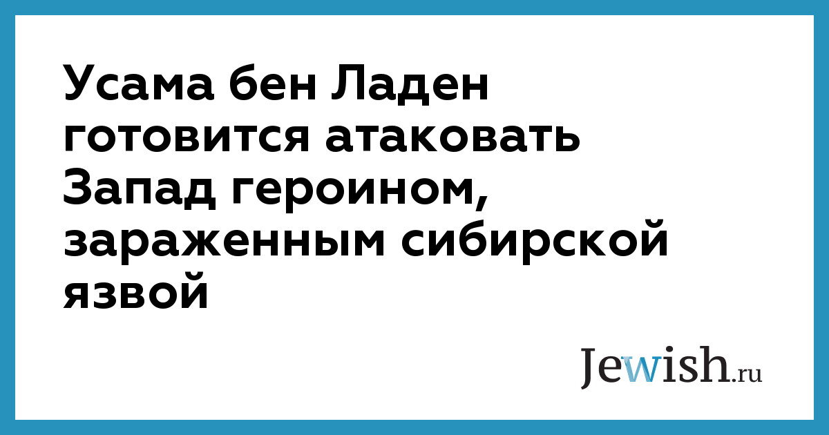 В распоряжение шведской газеты "Афтонбладет" попал секретный циркуляр Европола, направленный полицейским службам европейских стран. В этом документе утверждается, что из Афганистана в ряд европейских стран уже поступил героин, зараженный сибирской язвой. Партии зараженного героина обнаружены в Италии, Великобритании и Ирландии. В Италии семь наркоманов уже умерли от сибирской язвы, неподтвержденные жертвы этих биобомб есть и в Великобритании. Только что полицейские службы Скандинавских стран получили результаты вскрытия умершего норвежского наркомана — его убила сибирская язва, пришедшая в афганском героине. Афганистан занимает лидирующее место в мире по производству героина, и с началом американских бомбежек поток наркотиков из этой страны возрос. Талибам нужны средства для ведения войны, которые они могут получать главным образом за счет наркоторговли, и в качестве "бонуса" от этой торговли они решили наградить себя эпидемией на Западе. Эксперты предупреждают, что распространение смертельных болезней с помощью наркотиков — поистине дьявольский ход Бен Ладена. Если почтовые отправления можно взять под контроль и таким образом обуздать эпидемию, то движение наркотиков остановить невозможно.