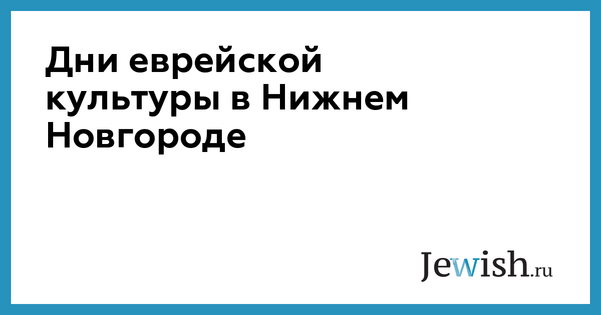 Дни еврейской культуры в Нижнем Новгороде