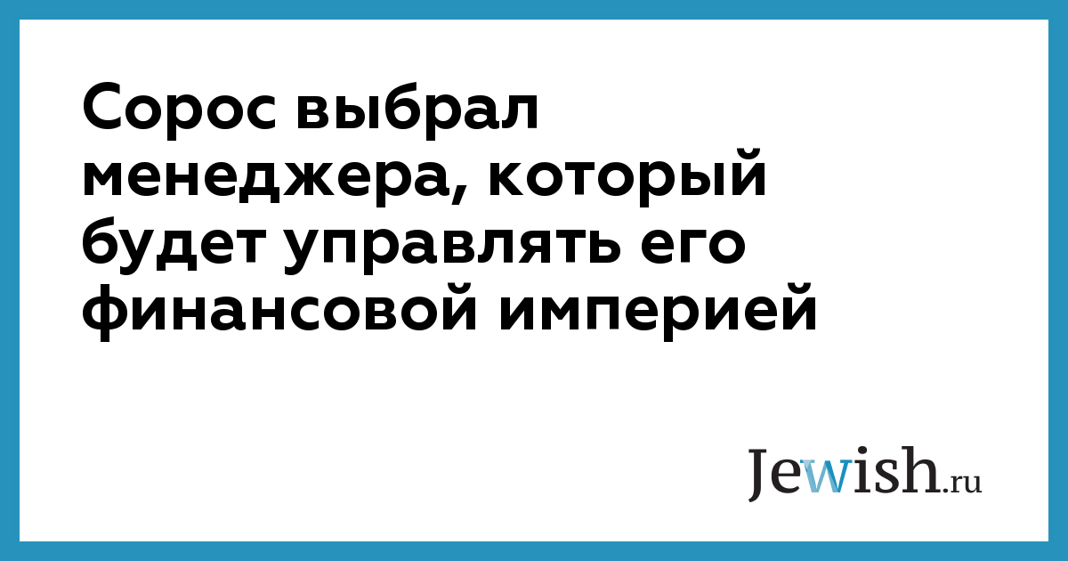 Сорос выбрал менеджера, который будет управлять его финансовой империей