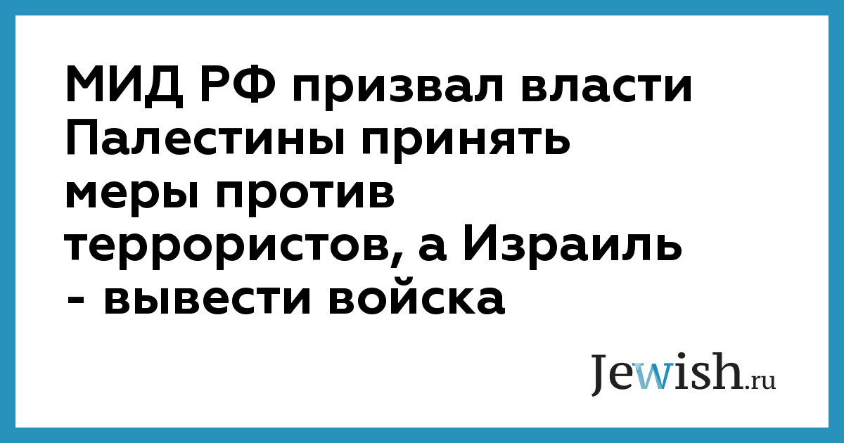МИД РФ призвал власти Палестины принять меры против террористов, а Израиль — вывести войска