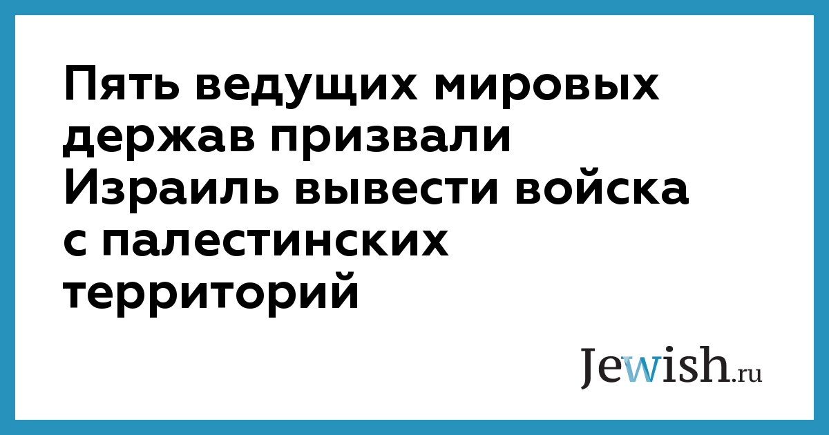 Пять ведущих мировых держав призвали Израиль вывести войска с палестинских территорий