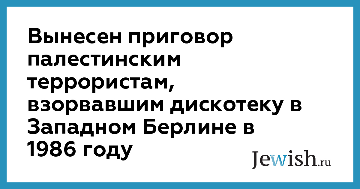 Вынесен приговор палестинским террористам, взорвавшим дискотеку в Западном Берлине в 1986 году