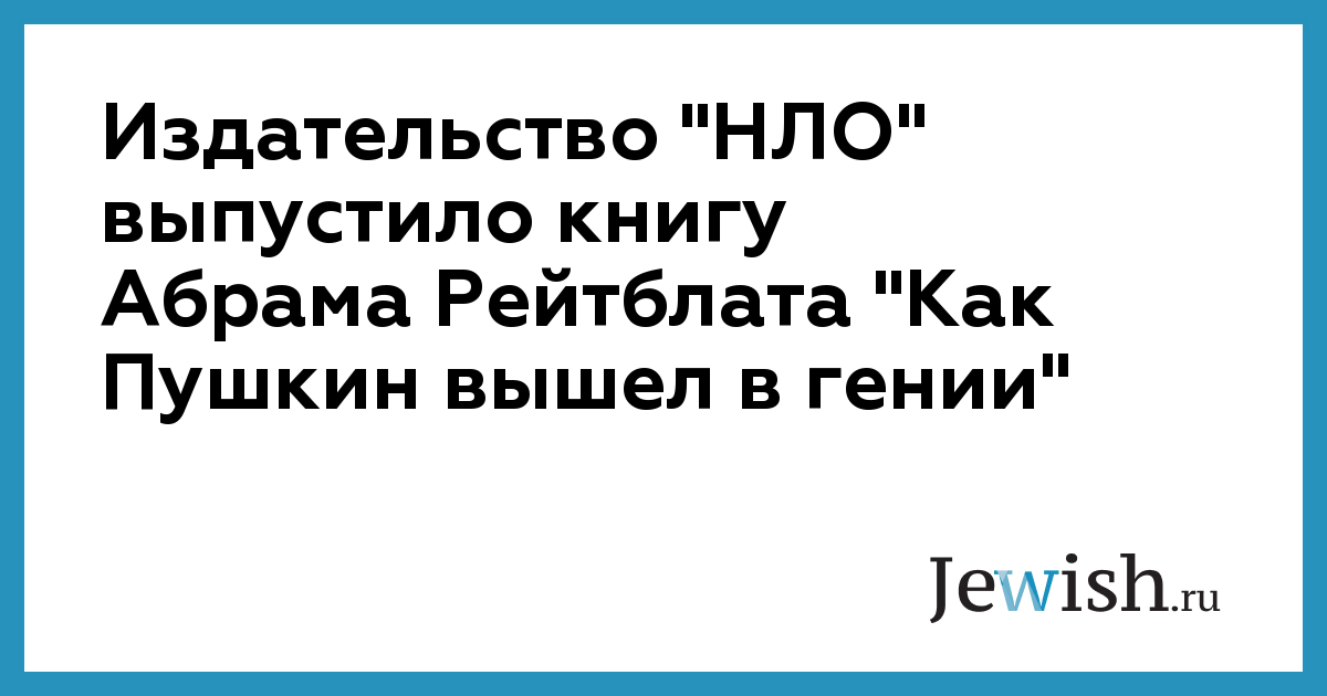 Издательство "НЛО" выпустило книгу Абрама Рейтблата "Как Пушкин вышел в гении"