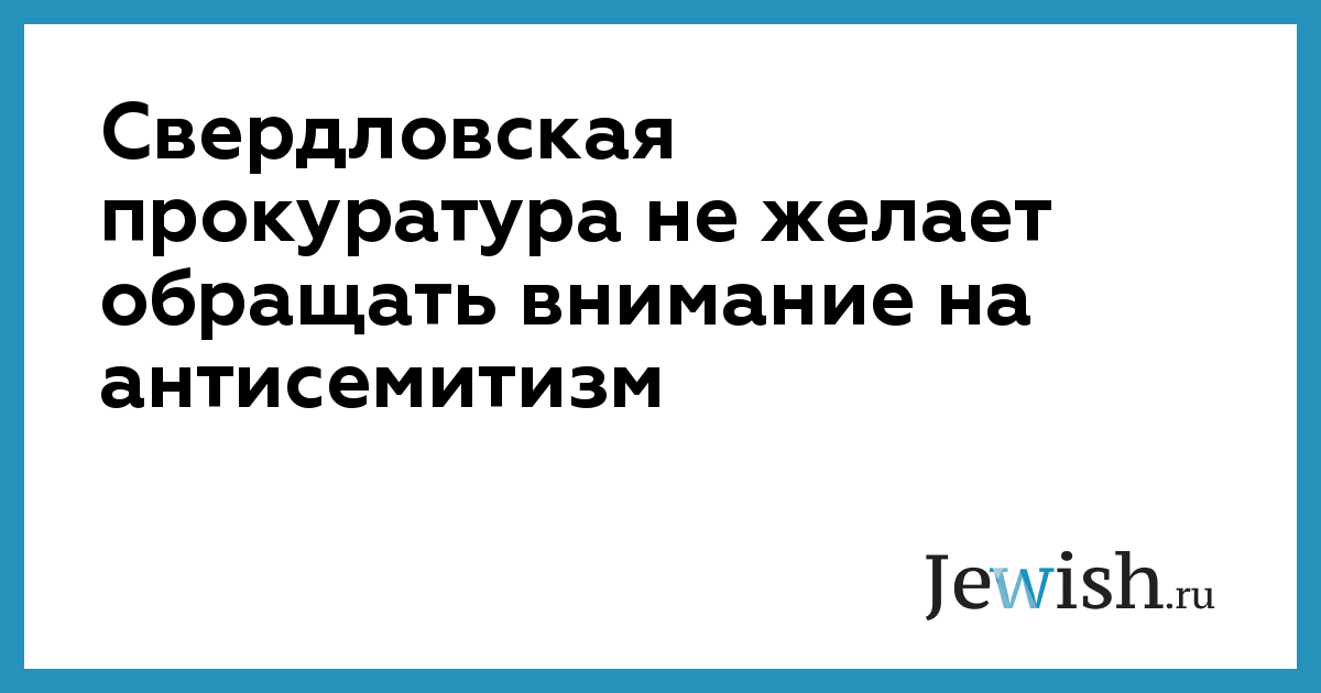 Свердловская прокуратура не желает обращать внимание на антисемитизм