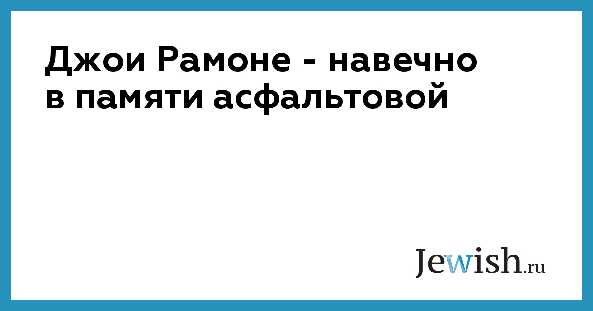 Джои Рамоне — навечно в памяти асфальтовой