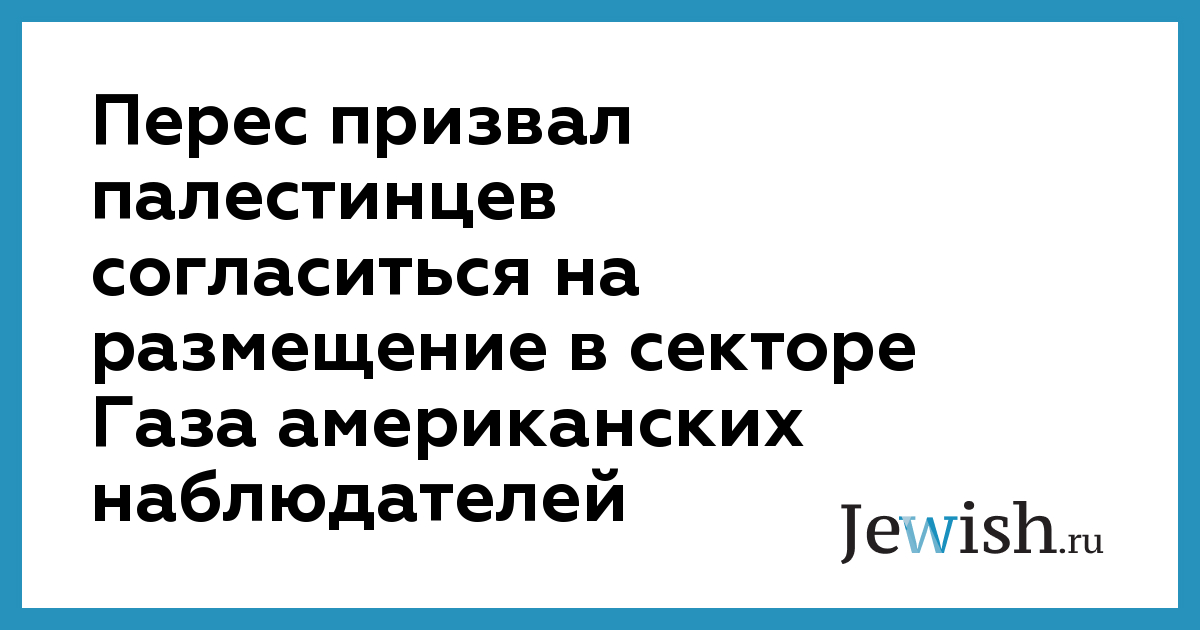 Перес призвал палестинцев согласиться на размещение в секторе Газа американских наблюдателей