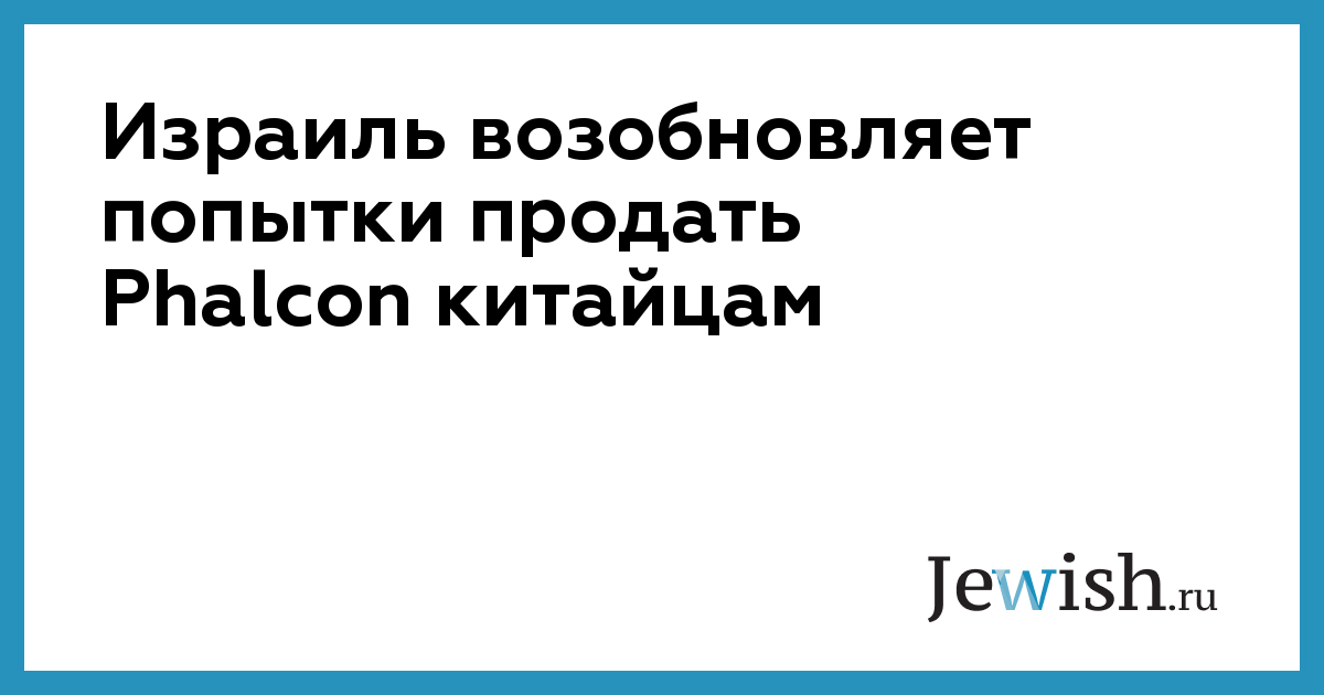 Израиль возобновляет попытки продать Phalcon китайцам