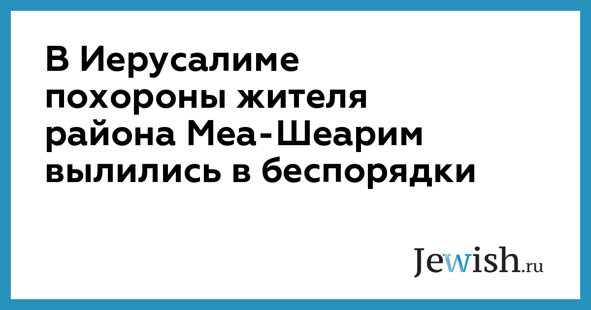 В Иерусалиме похороны жителя района Меа-Шеарим вылились в беспорядки