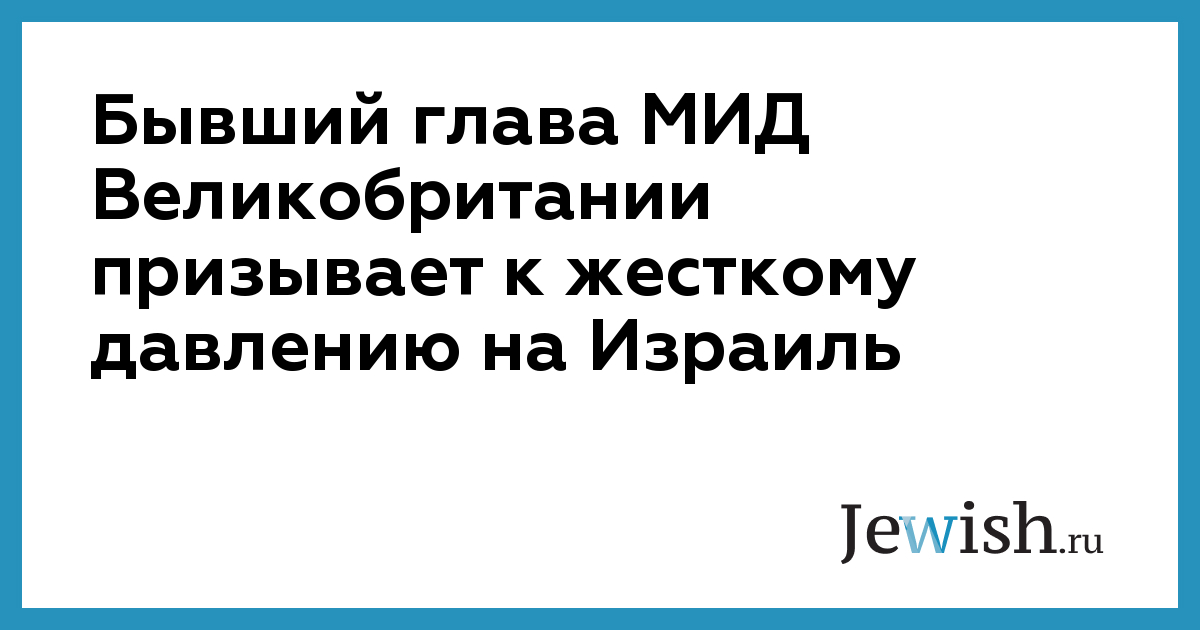 Бывший глава МИД Великобритании призывает к жесткому давлению на Израиль