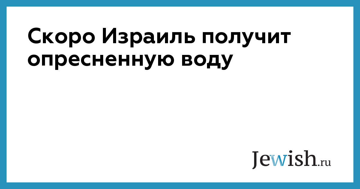 Скоро Израиль получит опресненную воду
