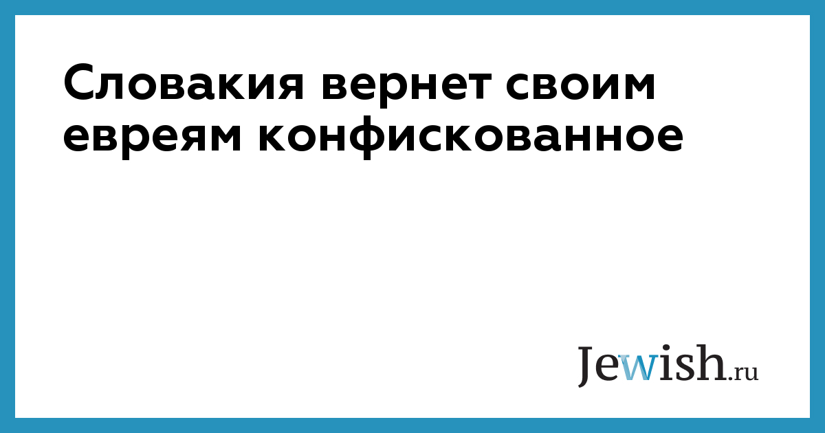 Словакия вернет своим евреям конфискованное