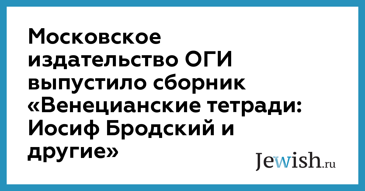 Московское издательство ОГИ выпустило сборник «Венецианские тетради: Иосиф Бродский и другие»