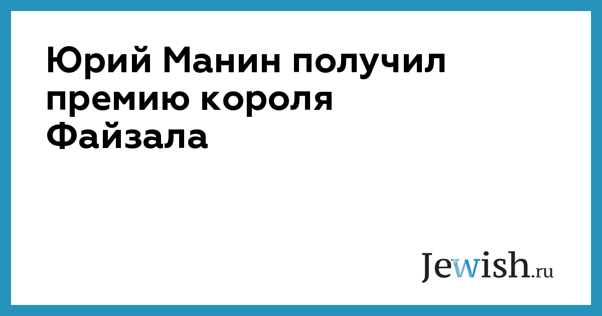 Юрий Манин получил премию короля Файзала