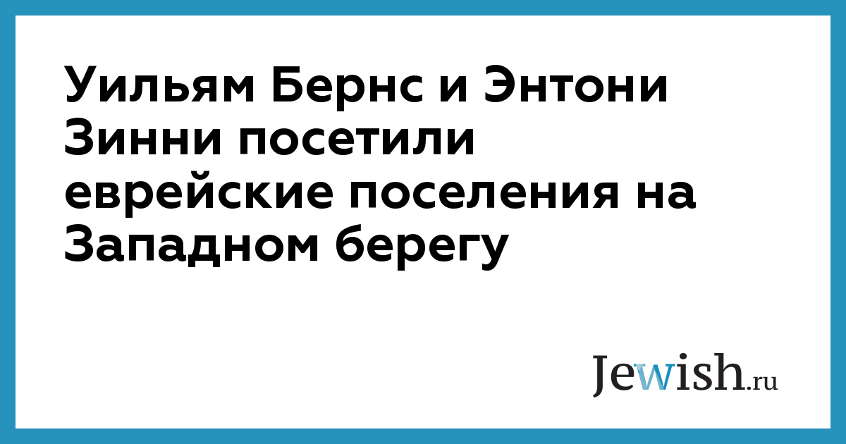 Уильям Бернс и Энтони Зинни посетили еврейские поселения на Западном берегу