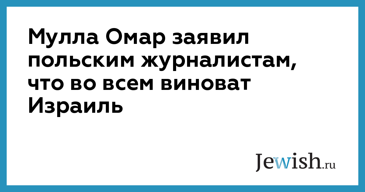 Мулла Омар заявил польским журналистам, что во всем виноват Израиль