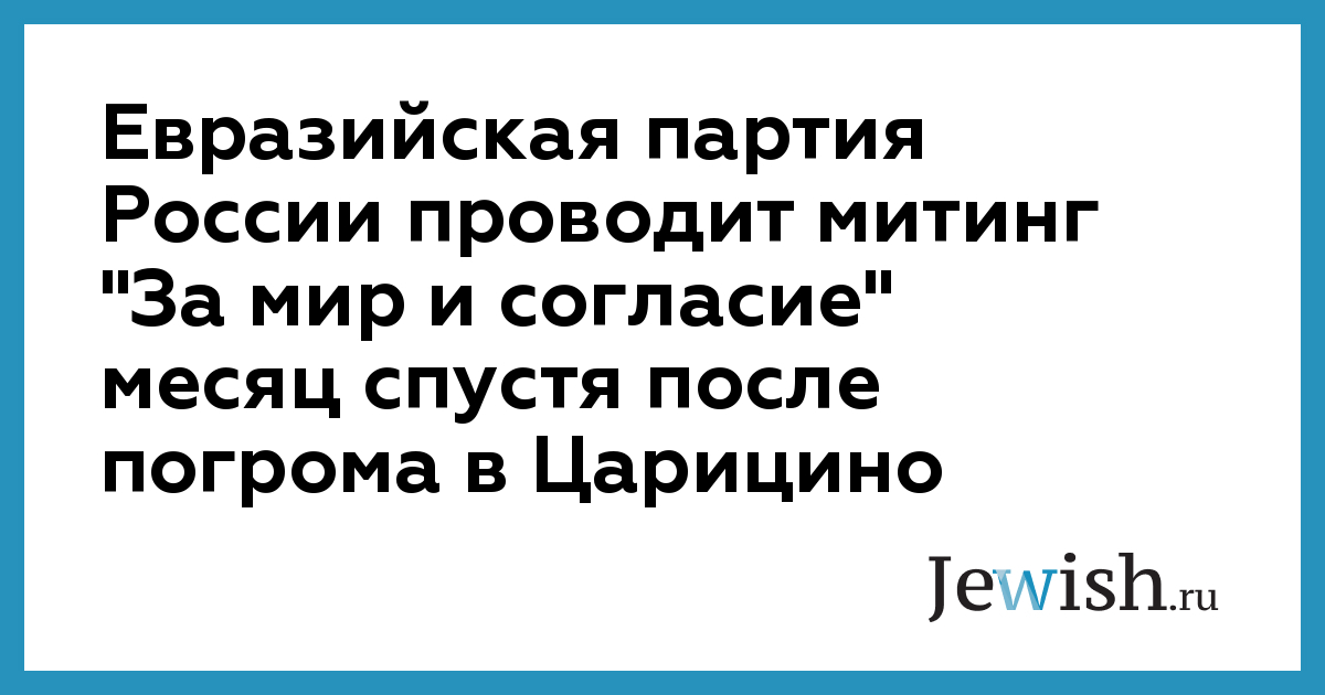 30 ноября исполняется ровно месяц, как две сотни фашиствующих "бритоголовых" устроили погром в Царицыно, закончившийся гибелью трёх и тяжёлыми ранениями 25 человек. Единственной общественной организацией, решившейся публично отметить этот скорбный день, стала Евразийская партия России (ЕПР): 30 ноября в 13:00 у входа в Парк культуры и отдыха имени Горького она проводит массовый митинг "За мир и согласие". Организаторы ожидают прибытия представителей всех религиозных конфессий России (ислама, православия, католичества, иудаизма, буддизма), многих депутатов Государственной думы, общественных деятелей, артистов, представителей землячеств и общественных организаций из 30 регионов РФ; приглашены даже несколько губернаторов. Как рассказал лидер ЕПР депутат Госдумы Абдул-Вахед Ниязов, идея митинга очевидна. За месяц прошедший после погрома, правоохранительные органы сделали для раскрытия преступления на удивление мало. Единственному 19-летнему арестованному, которого подозревают в организации погрома, инкриминируется даже не организация массовых беспорядков, а просто хулиганство (хоть и в наиболее тяжелой форме, ст. 213-3 УК РФ). Всего же за месяц милиционеры смогли найти лишь трёх из двух сотен погромщиков! На митинге планируется принять петицию с предложением выработки своеобразного "кодекса политкорректности".