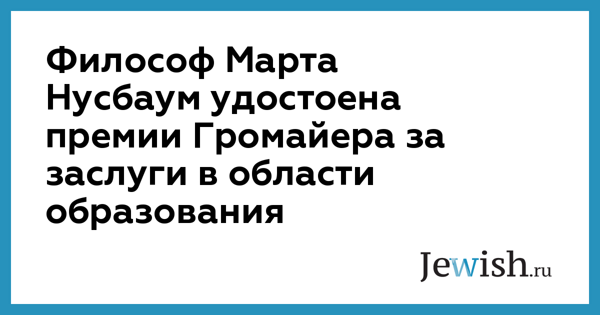 Философ Марта Нусбаум удостоена премии Громайера за заслуги в области образования