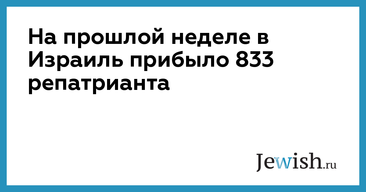 На прошлой неделе в Израиль прибыло 833 репатрианта