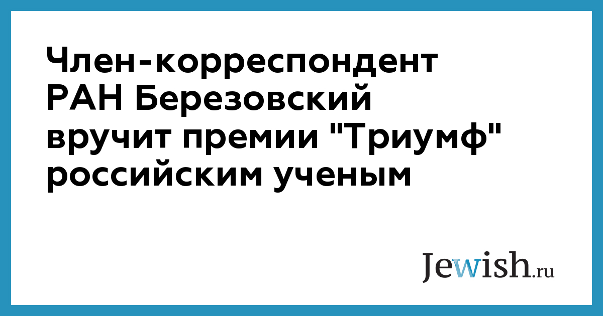 Член-корреспондент РАН Березовский вручит премии "Триумф" российским ученым