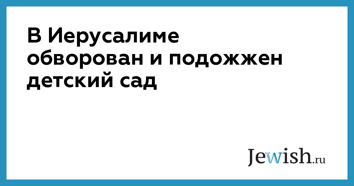 В Иерусалиме обворован и подожжен детский сад
