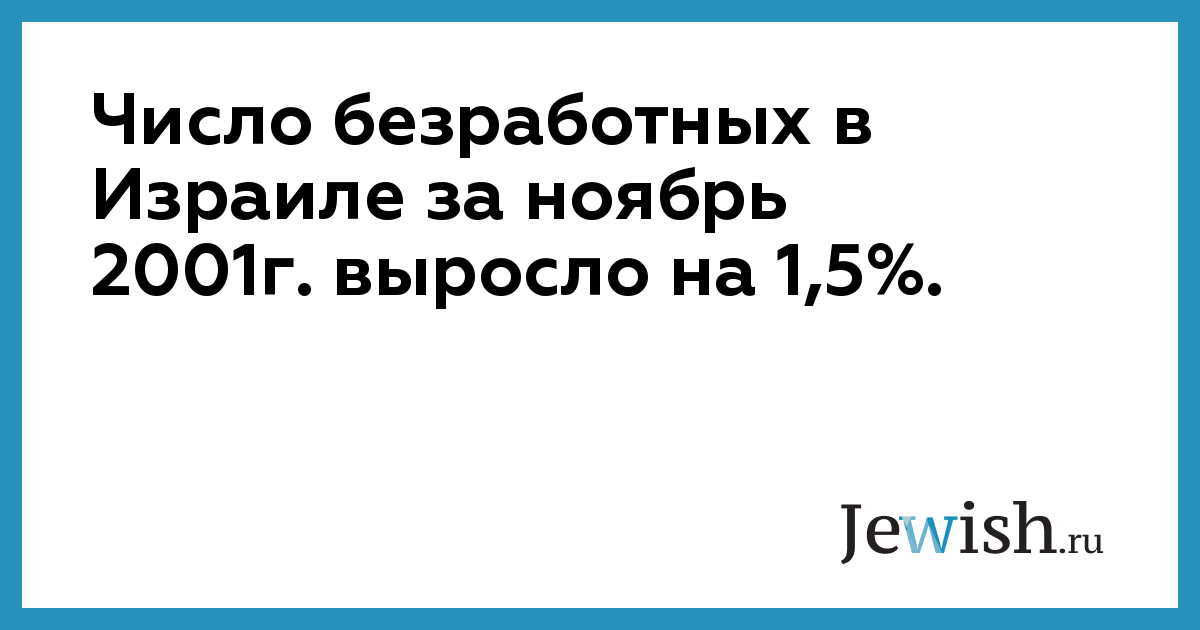 Число безработных в Израиле за ноябрь 2001г. выросло на 1,5%.
