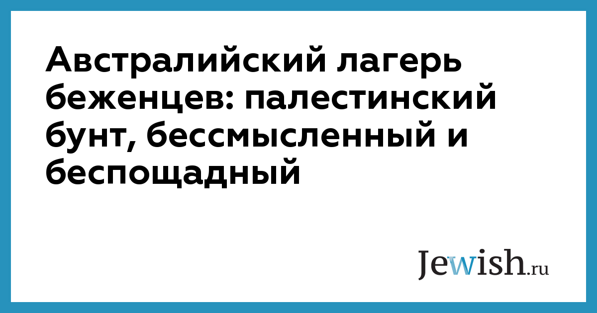 Австралийский лагерь беженцев: палестинский бунт, бессмысленный и беспощадный