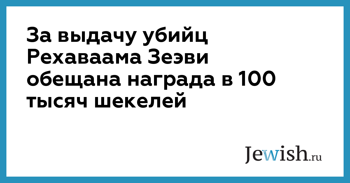 За выдачу убийц Рехаваама Зеэви обещана награда в 100 тысяч шекелей