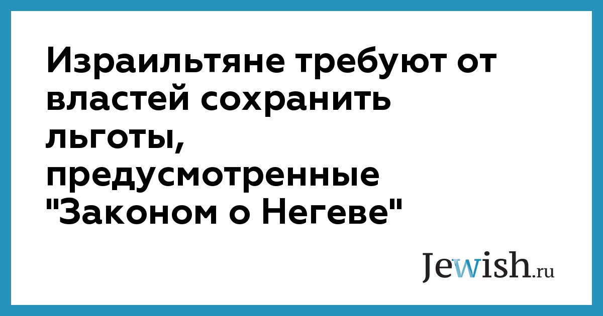 Израильтяне требуют от властей сохранить льготы, предусмотренные "Законом о Негеве"